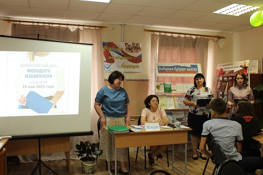 В рамках Дня молодого избирателя на базе Центральной районной библиотеки состоялось мероприятие с приглашением членов Клуба молодого избирателя «За нами – будущее». Участниками мероприятия стали обучающиеся 7-х и 8-х классов общеобразовательных учреждений села Раевский, достигшие 14-летнего возраста.