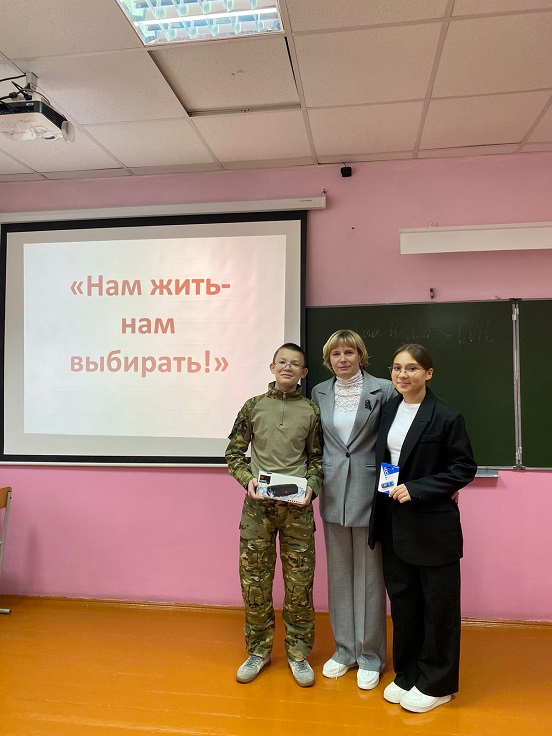 В рамках Дня молодого избирателя учитель истории и обществознания Альвина Денисенко провела с учащимися 10-го «А» класса интеллектуальную игру на тему «Нам жить – нам выбирать!». Мероприятие было направлено на актуализацию у ребят интереса к вопросам избирательного права и избирательного процесса, ознакомление с законодательством о выборах, повышение гражданской ответственности.